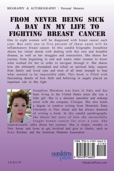 FROM NEVER BEING SICK A DAY IN MY LIFE TO FIGHTING BREAST CANCER. One in eight women will be diagnosed with breast cancer each year. But only one to five percent of these cases will be inflammatory breast cancer. In this candid biography Josephine shares her initial denial with dealing with this rare and dreadful disease, as well as her struggles and insecurities. She shares her journey from beginning to end and wants other women to know what worked for her in order to navigate through it. She shares how she ultimately triumphed and relied on spiritual help, support from family and loved ones and most of all inner strength to beat what seemed to be impossible odds. This book is filled with fascinating details of how faith and believing in angels played an important role in this fight.