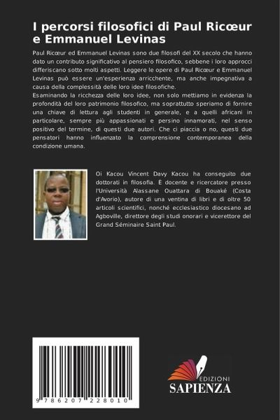 Paul Ric¿ur ed Emmanuel Levinas sono due filosofi del XX secolo che hanno dato un contributo significativo al pensiero filosofico, sebbene i loro approcci differiscano sotto molti aspetti. Leggere le opere di Paul Ric¿ur e Emmanuel Levinas può essere un'esperienza arricchente, ma anche impegnativa a causa della complessità delle loro idee filosofiche.Esaminando la ricchezza delle loro idee, non solo mettiamo in evidenza la profondità del loro patrimonio filosofico, ma soprattutto speriamo di fornire una chiave di lettura agli studenti in generale, e a quelli africani in particolare, sempre più appassionati e persino innamorati, nel senso positivo del termine, di questi due autori. Che ci piaccia o no, questi due pensatori hanno influenzato la comprensione contemporanea della condizione umana.