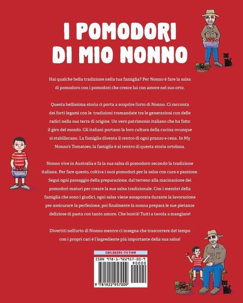 Il nonno vive in Australia e prepara la sua salsa di pomodoro secondo la tradizione italiana. Per fare questo, coltiva i propri pomodori per la salsa. Segui ogni passaggio dalla preparazione del terreno alla macinazione dei pomodori maturi per creare la sua salsa tradizionale. Con i membri della famiglia come giudici, ogni salsa viene assaporata con cura per la perfezione. Finalmente la nonna prepara con amore le sue pietanze di pasta gustosissime! L'autore ha condiviso autentiche ricette di famiglia di vari tipi di sugo per la pasta tramandate da generazioni di nonne e nonni di tutta Italia e del mondo.