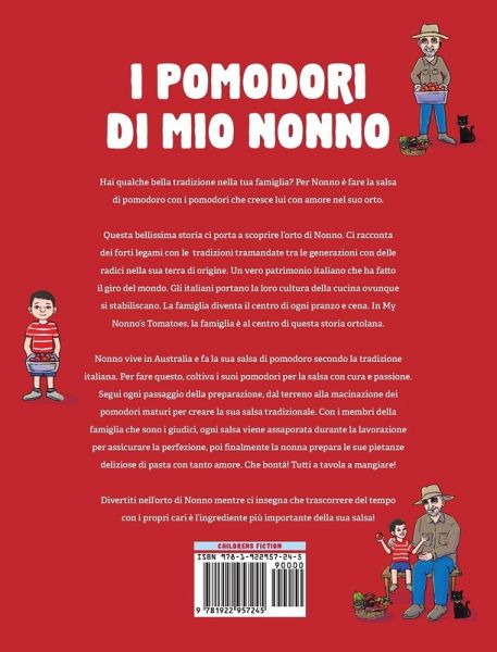 Il nonno vive in Australia e prepara la sua salsa di pomodoro secondo la tradizione italiana. Per fare questo, coltiva i propri pomodori per la salsa. Segui ogni passaggio dalla preparazione del terreno alla macinazione dei pomodori maturi per creare la sua salsa tradizionale. Con i membri della famiglia come giudici, ogni salsa viene assaporata con cura per la perfezione. Finalmente la nonna prepara con amore le sue pietanze di pasta gustosissime! L'autore ha condiviso autentiche ricette di famiglia di vari tipi di sugo per la pasta tramandate da generazioni di nonne e nonni di tutta Italia e del mondo.
