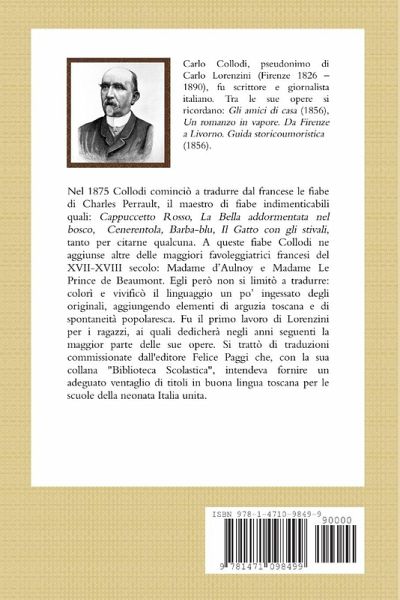 Aonia edizioni. Nel 1875 Collodi cominciò a tradurre dal francese le fiabe di Charles Perrault, il maestro di fiabe indimenticabili quali: Cappuccetto Rosso, La Bella addormentata nel bosco, Cenerentola, Barba-blu, Il Gatto con gli stivali, tanto per citarne qualcuna. A queste fiabe Collodi ne aggiunse altre delle maggiori favoleggiatrici francesi del XVII-XVIII secolo: Madame d'Aulnoy e Madame Le Prince de Beaumont. Egli però non si limitò a tradurre: colorì e vivificò il linguaggio un po' ingessato degli originali, aggiungendo elementi di arguzia toscana e di spontaneità popolaresca. Fu il primo lavoro di Lorenzini per i ragazzi, ai quali dedicherà negli anni seguenti la maggior parte delle sue opere. Si trattò di traduzioni commissionate dall'editore Felice Paggi che, con la sua collana "Biblioteca Scolastica", intendeva fornire un adeguato ventaglio di titoli in buona lingua toscana per le scuole della neonata Italia unita.