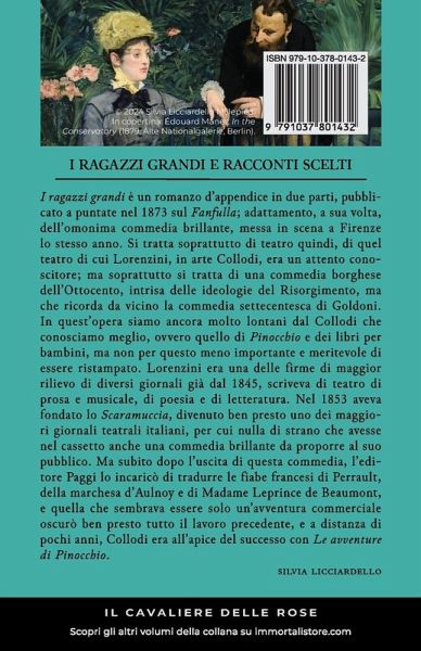 Presentazione della Nuova Edizione I ragazzi grandi di Carlo Collodi A cura di Silvia Licciardello Con grande piacere annunciamo l'uscita della nuova edizione di I ragazzi grandi, un'opera meno conosciuta ma non meno affascinante di Carlo Collodi, curata con passione e competenza da Silvia Licciardello. Questa edizione rappresenta un'opportunità unica per riscoprire un lato più sperimentale dell'autore di Pinocchio, presentando una storia a tratti sarcastica: una sorta di commedia borghese in forma di romanzo, in cui si mescolano i vecchi temi della brillante commedia settecentesca di Goldoni e i nuovi ideali del Risorgimento.