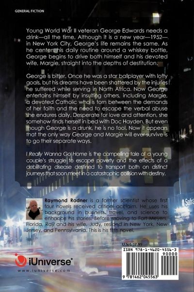 Young World War II veteran George Edwards needs a drink-all the time. Although it is a new year-1952-in New York City, George's life remains the same. As he centers his daily routine around a whiskey bottle, George begins to drive both himself and his devoted wife, Margie, straight into the depths of destitution. George is bitter. Once he was a star ballplayer with lofty goals, but his dreams have been shattered by the injuries he suffered while serving in North Africa. Now George entertains himself by insulting others, including Margie, a devoted Catholic who is torn between the demands of her faith and the need to escape the verbal abuse she endures daily. Desperate for love and attention, she somehow finds herself in bed with Doc Hayden. But even though George is a drunk, he is no fool. Now it appears that the only way George and Margie will ever survive is to go their separate ways. I Really Wanna Go Home is the compelling tale of a young couple's struggle to escape poverty and the effects of a debilitating disease destined to transport both on distinct journeys that soon meet in a catastrophic collision with destiny.