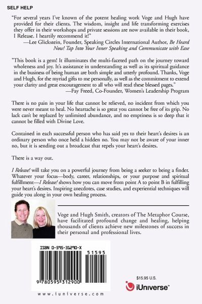 "Voge and Hugh have written a very practical handbook for releasing the limiting fears and beliefs from your past and living more authentically and lovingly in the here and now."--Dr. Gerald Jampolsky M. D. Best-selling author of Love Is Letting Go of Fear "For several years I've known of the potent healing work Voge and Hugh have provided for their clients. The wisdom, insight and life transforming exercises they offer in their workshops and private sessions are now available in their book, I Release. I heartily recommend it!"--Lee GlicksteinFounder, Speaking Circles InternationalAuthor, Be Heard Now! Tap Into Your Inner Speaking and Communicate with Ease "This book is a gem! It illuminates the multi-faceted path on the journeytoward wholeness and joy. It's assistance in understanding as well as itsspiritual guidance in the business of being human are both simple and utterly profound. Thanks, Voge and Hugh, for the myriad gifts to me personally,as well as the commitment to extend your clarity and great encouragement to all who will read these blessed pages."--Fay Freed, Co-Founder, Women's Leadership ProgramThere is no pain in your life that cannot be relieved, no incident from which you were never meant to heal. No heartache is so great you cannot be free of its grip. No lack can't be replaced by unlimited abundance, and no emptiness is so deep that it cannot be filled with Divine Love. Contained in each successful person who has said yes to their heart's desires is an ordinary person who once held a hidden no. You may not be aware of your inner no, but it is sending out a broadcast that repels your heart's desires. There is a way out. I Release!will take you on a powerful journey from being a seeker to being a finder. Whatever your focus--body, career, relationships, or your purpose and spiritual fulfillment--I Release! shows how you can move from point A to point B in fulfilling your heart's desires. Inspiring anecdotes, case studies, and experiential techniques will guide you along in your own healing process.