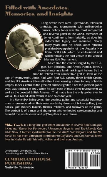 Before Tiger Woods took golfing by storm there was Bobby Jones--the most revered and recognized golfer in the world. Thirty years after his death, his legacy and influence continues to shine, as told in loving memoirs by fellow golfers, journalists, friends, relatives and fans. Illustrations.