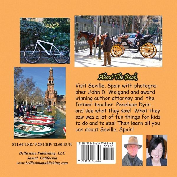When the award winning author, attorney and former teacher Penelope Dyan thinks of Seville, Spain she thinks about Alfalfa in the old kids' movie "The Little Rascals" singing the song, "I'm The Barber of Seville." That said, Penelope Dyan and photographer extraordinaire, John D. Weigand, set out in Seville, Spain to find the barber of Seville. Sadly, they found no barber of that title; but they did see some things kids would really like to see and saw some things kids would really like to do in Seville, right after they consulted with a few traveling kids along the way. What kids like to do and see and what parents like to do and see, may be the same thing, or it may be something entirely different. The trick to traveling with kids is basically to keep them quiet, happy and interested and to not bore them with a lot of spoon-fed facts. The same thing goes for learning. That said, Dyan sees with the eyes of a child, and Weigand captures what she sees with the lens of his camera. Children can use this book as a starting point to learn about Seville. And they can also use all the other tools Dyan provides, such as her kids web shows on www.stop4fun.org or her music videos on YouTube, for free. However, this is only a starting point; and kids and parents need to explore further in their quest for information and knowledge, because all of these things are merely a beginning, not a means to an end.