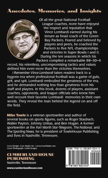 Of all the great National Football League coaches, none have earned the level of respect and reputation that Vince Lombardi merited during his tenure as head coach of the Green Bay Packers. Both feared and beloved by players and peers, Lombardi coached the Packers to five NFL championships and victories in the first two Super Bowls ever played. Over ten seasons, his Green Bay teams compiled a remarkable 98-30-4 record, although it was Lombardi's relentless, uncompromising tactics and values that defined him and his career more than the victories could by themselves.