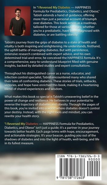 Embark on a transformative journey with "I Reversed My Diabetes - HAPPINESS for Prediabetes, Diabetes, and Obesity," where author Tabish Gill, a seasoned nurse with expertise in health research, shares his personal victory over diabetes. This book isn't just a narrative of recovery; it's a comprehensive guide infused with the innovative HAPPINESS formula, designed to empower you to reclaim your health and vitality. Within these pages, you'll discover a fusion of practical wisdom, scientific research, and relatable anecdotes that illuminate the path to a healthier you. From navigating the complexities of insulin resistance to embracing a diet that champions your well-being, Tabish provides the tools you need to transform your lifestyle and the way you view health. Whether you're grappling with prediabetes, managing diabetes, or seeking to prevent and overcome obesity, this book offers a beacon of hope and a blueprint for change. Join the ranks of those who have revolutionized their lives through the HAPPINESS formula and step into a world where your health goals are not just dreams, but achievable realities. ¿ "I Reversed My Diabetes" is more than just a book; it's a companion on your journey to Glucotopia-a state of optimal health where every choice brings you closer to balance and true wellness. Get ready to turn the pages and start a new chapter in your life, one where diabetes doesn't define your limits, but where your determination does.