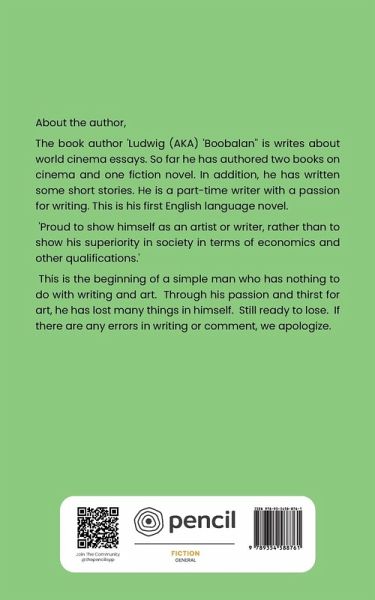 About the author, The book author 'Ludwig (AKA) 'Boobalan'' is writes about world cinema essays. So far he has authored two books on cinema and one fiction novel. In addition, he has written some short stories. He is a part-time writer with a passion for writing. This is his first English language novel. 'Proud to show himself as an artist or writer, rather than to show his superiority in society in terms of economics and other qualifications.' This is the beginning of a simple man who has nothing to do with writing and art. Through his passion and thirst for art, he has lost many things in himself. Still ready to lose. If there are any errors in writing or comment, we apologize.