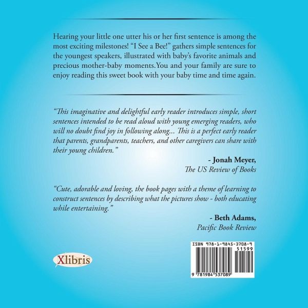 Hearing your little one utter his or her first sentence is among the most exciting milestones! "I See a Bee!" gathers concise sentences for the youngest speakers, illustrated with baby's favorite animals and precious mother-baby moments. You and your family are sure to enjoy reading this sweet book with your baby time and time again.