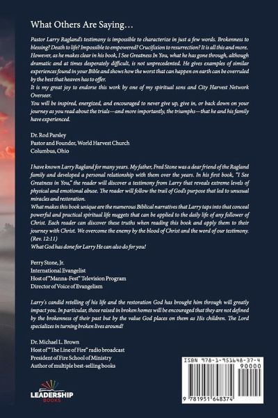 This book is an amazingly insightful, compelling, and uplifting read because it gives personal examples from author Larry Ragland's life, pouring out encouragement to every Christian reader at any age. This encouragement enlightens and motivates the reader to shine forth the Greatness that God has put in his or her life. Larry Ragland writes a compelling memoir about his life, threading a message throughout the book about how God led him successfully through childhood rejection, legal indictments, church location struggles, health issues, and even marriage problems just exactly as God triumphantly led the Bible characters of old miraculously through their wilderness of tragedies, pain, sorrows, challenges, and intrigue to bring out the greatness in them, so He did in Larry's life, and so He wants to do in you, the reader too! Larry Ragland has over 30 years of experience in local church ministry. Alongside his wife Sandy and their two daughters, he founded Solid Rock in Birmingham, Alabama. Together they have pastored the same church for 30 years. He has preached the Gospel in several states and many countries. Larry is reaching the world through his books, online videos, podcasts, and digital courses. In 1996 he founded Ambassadors Bible College, which has equipped and credentialed church planters, pastors, and missionaries around the world. Larry is also the Founder and Director of Ambassadors Network (a network of local churches, pastors, missionaries, and leaders). His passion is to lead leaders and equip this generation to be a voice of influence on our culture and world.