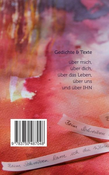 Beim Schreiben lasse ich die Wörter tanzen, wo sie sonst nur stolpern. Beim Schreiben lasse ich die Wörter fliegen, wo sie sonst nur fallen. Beim Schreiben lasse ich die Wörter frei, wo sie sonst zwischen Gedanken gefangen sind. Gedichte und Texte über mich, über dich, über das Leben, über uns und über IHN