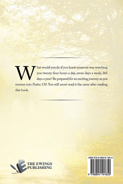What would you do if you knew someone was watching you twenty-four hours a day, seven days a week, 365 days a year? Be prepared for an exciting journey as you venture into Psalm 139. You will never read it the same after reading this book.