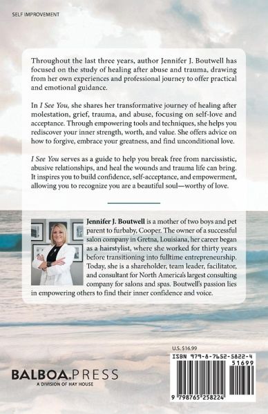 Throughout the last three years, author Jennifer J. Boutwell has focused on the study of healing after abuse and trauma, drawing from her own experiences and professional journey to offer practical and emotional guidance. In I See You, she shares her transformative journey of healing after molestation, grief, trauma, and abuse, focusing on self-love and acceptance. Through empowering tools and techniques, she helps you rediscover your inner strength, worth, and value. She offers advice on how to forgive, embrace your greatness, and find unconditional love. I See You serves as a guide to help you break free from narcissistic, abusive relationships, and heal the wounds and trauma life can bring. It inspires you to build confidence, self-acceptance, and empowerment, allowing you to recognize you are a beautiful soul-worthy of love.