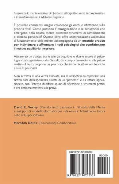 È possibile conoscersi meglio chiudendo gli occhi e riflettendo sulla propria vita? Come possono l'immaginazione e le sensazioni che emergono nella nostra mente diventare strumenti di cambiamento e crescita personale? Questo libro offre un'introduzione accessibile al funzionamento della mente, accompagnata da un metodo pratico per individuare e affrontare i nodi psicologici che condizionano il nostro equilibrio interiore (visita il sito www.langstonemethod.com per maggiori dettagli). Attraverso un dialogo tra le scienze cognitive e alcune scuole di psicologia - dal Cognitivismo alla Gestalt, dal Comportamentismo alla Psicoanalisi - il testo propone un percorso che intreccia riflessioni teoriche e vissuti personali. Non si tratta di una verità assoluta, ma di un'ipotesi da esplorare: una sintesi nata dall'esperienza diretta di un "paziente" e da letture appassionate, con l'intento di offrire spunti di riflessione e strumenti pratici per chi desidera mettersi alla prova.