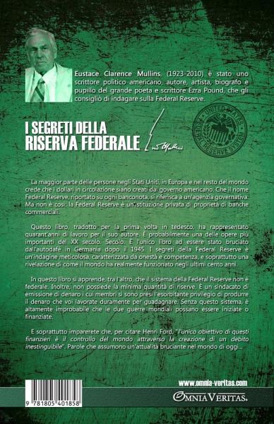La maggior parte delle persone negli Stati Uniti, in Europa e nel resto del mondo crede che i dollari in circolazione siano creati dal governo americano. Che il nome Federal Reserve, riportato su ogni banconota, si riferisca a un'agenzia governativa. Ma non è così la Federal Reserve è un'istituzione privata di proprietà di banche commerciali. Questo libro, tradotto per la prima volta in tedesco, ha rappresentato quarant'anni di lavoro per il suo autore. È probabilmente una delle opere più importanti del XX secolo. Secolo. È l'unico libro ad essere stato bruciato dall'autodafé in Germania dopo il 1945. I segreti della Federal Reserve è un'indagine meticolosa, caratterizzata da onestà e competenza, e soprattutto una rivelazione di come il mondo ha realmente funzionato negli ultimi cento anni. In questo libro si apprende, tra l'altro, che il sistema della Federal Reserve non è federale. Inoltre, non possiede la minima quantità di riserve. È un sindacato di emissione di denaro i cui membri si sono presi l'esorbitante privilegio di produrre il denaro che voi lavorate duramente per guadagnare. Senza questo sistema, è altamente improbabile che le due guerre mondiali possano essere iniziate o finanziate. E soprattutto imparerete che, per citare Henri Ford, "l'unico obiettivo di questi finanzieri è il controllo del mondo attraverso la creazione di un debito inestinguibile". Parole che assumono un'attualità bruciante nel mondo di oggi...