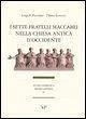 La tradizione dei sette fratelli Maccabei e della loro madre è entrata presto nel Cristianesimo antico d'Occidente, dove ha raggiunto il punto di massima espansione nel IV e V secolo. Questo studio analizza alcuni momenti significativi della saga maccabaica. A partire da una ricostruzione inedita della presenza dei Maccabei nell'ambiente romano, si prosegue con uno studio critico sul testo agiografico della Passio SS. Machabaeorum e ci si sofferma sul cosiddetto Carmen de Martyrio Maccabaeorum, esaminato secondo un'angolatura letteraria. Chiude il lavoro un'analisi dell'episodio della sete di Davide, che offre motivi di interessanti collegamenti con la recezione della vicenda maccabaica in prospettiva ascetica. Das Urheberrecht an bibliographischen und produktbeschreibenden Daten und an den bereitgestellten Bildern liegt bei Informazioni Editoriali, I.E. S.r.l., oder beim Herausgeber oder demjenigen, der die Genehmigung erteilt hat. Alle Rechte vorbehalten.