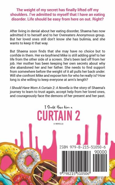 Shaena has come to terms with her eating disorder and confessed it to herself and her Overeaters Anonymous group. However, her family and friends are oblivious to her bulimia, and she intends to keep it that way. Shaena soon realizes she may have to trust them and share her secret. Shaena's, ex-boyfriend, Mike, has resurfaced and is now threatening to reveal her secret, causing her even more distress from the other side of a screen. Additionally, there is turmoil at work, causing upheaval in Shaena's stable work life. Unless there's a quick turnaround, she will be dragged back down by the weight of everything. In I Should Have Worn a Curtain 2, Shaena embarks on a journey to rebuild trust and confront her past and present demons.