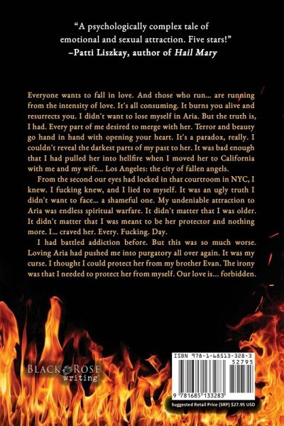 Everyone wants to fall in love. And those who run... are running from the intensity of love. It's all consuming. It burns you alive and resurrects you. I didn't want to lose myself in Aria. But the truth is, I had. Every part of me desired to merge with her. Terror and beauty go hand in hand with opening your heart. It's a paradox, really. I couldn't reveal the darkest parts of my past to her. It was bad enough that I had pulled her into hellfire when I moved her to California with me and my wife... Los Angeles: the city of fallen angels. From the second our eyes had locked in that courtroom in NYC, I knew. I fucking knew, and I lied to myself. It was an ugly truth I didn't want to face... a shameful one. My undeniable attraction to Aria was endless spiritual warfare. It didn't matter that I was older. It didn't matter that I was meant to be her protector and nothing more. I... craved her. Every. Fucking. Day. I had battled addiction before. But this was so much worse. Loving Aria had pushed me into purgatory all over again. It was my curse. I thought I could protect her from my brother Evan. The irony was that I needed to protect her from myself. Our love is... forbidden.