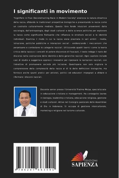 "Signifiers in Flux: Deconstructing Race in Modern Society" analizza la natura dinamica della razza, sfidando le tradizionali prospettive biologiche e presentando la razza come un costrutto culturalmente mediato. Questo libro fonde intuizioni provenienti dalla sociologia, dall'antropologia, dagli studi culturali e dalle scienze politiche per esplorare la razza come significante fluttuante che influenza le strutture sociali e le identità individuali. Esamina il modo in cui la razza viene plasmata in vari ambiti - media, istruzione, politiche pubbliche e interazioni sociali - evidenziando i meccanismi che perpetuano e contestano le categorie razziali. Utilizzando quadri teorici come la teoria critica della razza e i concetti di potere discorsivo di Foucault, il testo indaga il ruolo del discorso nella costruzione delle identità e delle gerarchie razziali. Ogni capitolo include casi di studio e suggerisce approcci innovativi per ripensare le narrazioni razziali, con l'obiettivo di promuovere società più inclusive. Quest'opera non solo migliora la comprensione della complessità della razza al di là delle definizioni biologiche, ma fornisce anche spunti pratici per attivisti, politici ed educatori impegnati a sfidare e riformare i discorsi razziali.