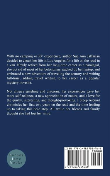 With no camping or RV experience, author Sue Ann Jaffarian decided to chuck her life in Los Angeles for a life on the road in a van. Newly retired from her long-time career as a paralegal, she got rid of most of her belongings, packed up her laptop, and embraced a new adventure of traveling the country and writing full-time, adding travel writing to her career as a popular mystery novelist. Not always sunshine and unicorns, her experiences gave her more self-reliance, a new appreciation of nature, and a love for the quirky, interesting, and thought-provoking. I Sleep Around chronicles her first two years on the road and the time leading up to taking this bold step. All while her friends and family thought she had lost her mind.