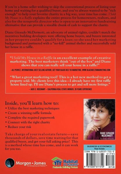 I Sold My House in a Raffle fits perfectly with the current economic climate and is based on the premise that many home sellers face frustration as they try and sell their properties, while nonprofit organizations, from reduced government spending and a drop in donations, struggle to meet the increased need for their services. The result is foreclosure for many homeowners and a cut back in services from these charities or face closing their doors. The purpose of the book is to partner home sellers with a worthy charity to get their home sold through a raffle with the home as the grand prize, and provide a significant cash benefit to the charity. I Sold My House in a Raffle walks the reader (the home seller, and the nonprofit director) through each step of the process.