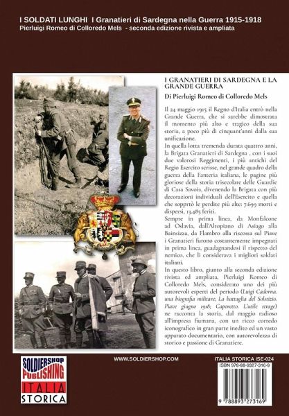 Il 24 maggio 1915 il Regno d'Italia entrò nella Grande Guerra, che si sarebbe dimostrata il momento più alto e tragico della sua storia, a poco più di cinquant'anni dalla sua unificazione. In quella lotta tremenda durata quattro anni, la Brigata Granatieri di Sardegna , con i suoi due valorosi Reggimenti, i più antichi del Regio Esercito scrisse, nel grande quadro della guerra della Fanteria italiana, le pagine più gloriose della storia trisecolare delle Guardie di Casa Savoia, divenendo la Brigata con più decorazioni individuali dell'Esercito e quella che sopprtò le perdite più alte: 7.699…mehr