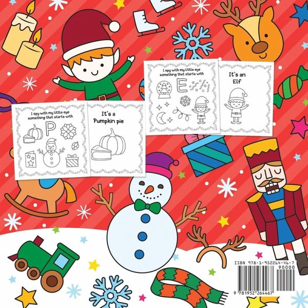 Celebrate the Christmas spirit with this delightful children's activity book! As a perfect activity book for children aged 2-5, this adorable Christmas-themed coloring book will quickly become a family favorite! Kids will love coloring all the cute illustrations inside - and the eye spy puzzles will provide them with hours upon hours of fun and enjoyment as they practice their creativity and develop essential hand-eye coordination. With a complete alphabet and 50+ pages of professional-quality images, I Spy Christmas Book for Kids is the perfect present to put under your tree. Plus, it's also great for keeping your kids busy, passing the time, and long journeys too! Book details:Cute Illustrations Designed For Children To Match The Letter With The Right Image A Wonderful Book For Kindergarten-Aged Kids Promotes Hand-Eye Coordination, Creativity, and Alphabet Recognition High-Quality Paper Which Is Perfect For All Pen, Pencil, Crayon and Marker Types Makes a Fun and Creative Christmas Present For Your Child, Grandchild, Niece or Nephew And More! So if you're looking for a wonderful activity, Christmas gift, or stocking-stuffer which is guaranteed to put a smile on your child's face, then it's time to discover this delightful book.