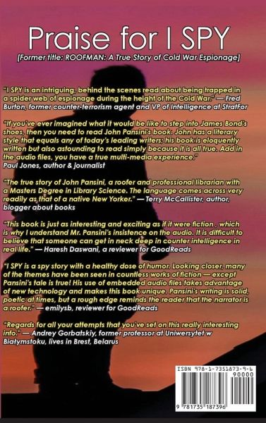 The real world of espionage and counterespionage was not what I expected. An ordinary guy like me, a roofer with a Master's degree in Library Science and with no prior training in intelligence work, nothing in my imagination prepared me for what I faced during the sensitive time when the United States and the Soviet Union were at each others throats. This true story includes 63 minutes of taped conversations between me and my spy handlers. A reader will see and be part of the real world of spying: of talking to the Feds, the Russians, and always watching one's back.