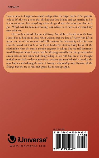 Careen move to kingston to attend college after the tragic daeth of her parents, only to left the one person that she had ever love behind and get married to her school counselor. But everything wasn't all- good after she found out that he is gay. Which had led him into beating and refuse to to have sex are spend any time with her. Her two best friend Destiny and Kerry-Ann all been friends since the basic school but all hell broke loose when Destiny met the love of Kerry-Ann life in miami on one of her vocation and still continue the relationship with him even after she found out that he is her friend boyfriend. Destiny finally break off the relationship when she was six months pregnant in college. She was still determine to tell Kerry-ann about Dwayne and her sleeping around before she get married to a man that she met online and ending falling in love with him are so she thought until she went back to the country for a vocation and reunited with a boy that she once had sex with during the time of having a relationship with Dwayne. all the feelings that she try to hide and ignore has rooted up again.