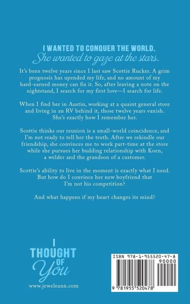I wanted to conquer the world. She wanted to gaze at the stars. It's been twelve years since I last saw Scottie Rucker. A grim prognosis has upended my life, and no amount of my hard-earned money can fix it. So, after leaving a note on the nightstand, I search for my first love-I search for life. When I find her in Austin, working at a quaint general store and living in an RV behind it, those twelve years vanish. She's exactly how I remember her. Scottie thinks our reunion is a small-world coincidence, and I'm not ready to tell her the truth. After we rekindle our friendship, she convinces me to work part-time at the store while she pursues her budding relationship with Koen, a welder and the grandson of a customer. Scottie's ability to live in the moment is exactly what I need. But how do I convince her new boyfriend that I'm not his competition? And what happens if my heart changes its mind?