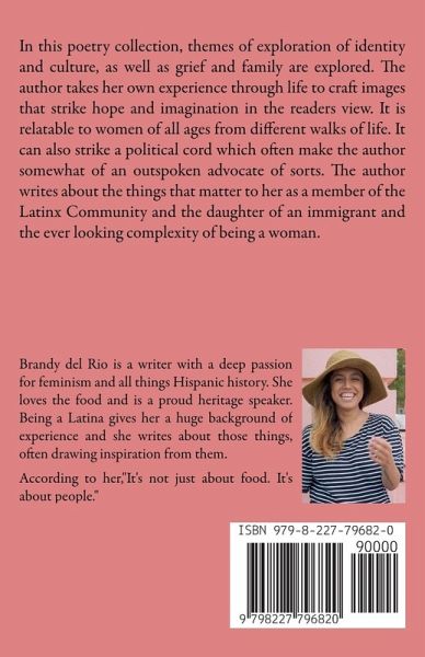 In this poetry collection, themes of exploration of identity and culture, as well as grief and family are explored. The author takes her own experience through life to craft images that strike hope and imagination in the readers view. It is relatable to women of all ages from different walks of life. It can also strike a political cord which often make the author somewhat of an outspoken advocate of sorts. The author writes about the things that matter to her as a member of the Latinx Community and the daughter of an immigrant.