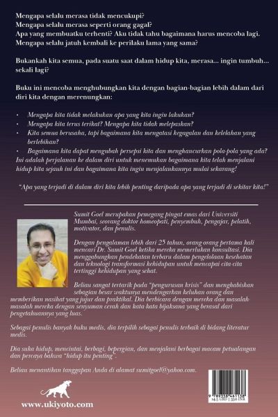 Mengapa selalu merasa tidak mencukupi? Mengapa selalu merasa seperti orang gagal? Apa yang membuatku terhenti? Aku tidak tahu bagaimana harus mencoba lagi. Mengapa selalu jatuh kembali ke perilaku lama yang sama? Bukankah kita semua, pada suatu saat dalam hidup kita, merasa... ingin tumbuh... sekali lagi? Buku ini mencoba menghubungkan kita dengan bagian-bagian lebih dalam dari diri kita dengan merenungkan: - Mengapa kita tidak melakukan apa yang kita ingin lakukan? - Mengapa kita terus terikat? Mengapa kita tidak melepaskan? - Kita semua berusaha, tapi bagaimana kita mengatasi kegagalan dan kelelahan yang berlebihan? - Bagaimana kita dapat mengubah persepsi kita dan menghancurkan pola-pola yang ada? Ini adalah perjalanan ke dalam diri untuk menemukan bagaimana kita telah menjalani hidup kita sejauh ini dan bagaimana kita ingin menjalankannya mulai sekarang! "Apa yang terjadi di dalam diri kita lebih penting daripada apa yang terjadi di sekitar kita!"