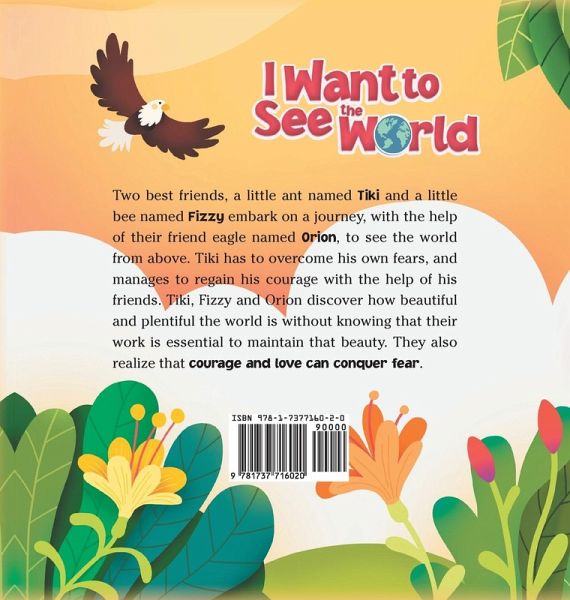 Two friends, a little ant named Tiki and a little bee named Fizzy, who are best friends, live in a very faraway forest. The two friends want to see the world from above. They can only see it from the ground and they suspect there are other wonderful things to see. They decide to ask their friend eagle named Orion to take them to see the world from above and the eagle is very pleased to do so. But then Tiki has to deal with his own fears. Orion talks to them about conquering our fears to achieve our goals, and explains that fear can keep us safe sometimes, but if we don't control our own fears, it can steal all we want to be in life, steal friendships and even steal love. Tiki and Fizzy realize they need to stick together and conquer Tiki's fear and they accomplish their dream. When they return to the forest, Orion tells them how important their individual work is to maintain our world beautiful and plentiful. The story leads children to understand that taking care of the world is an individual responsibility.The book is about love and being good to each other.