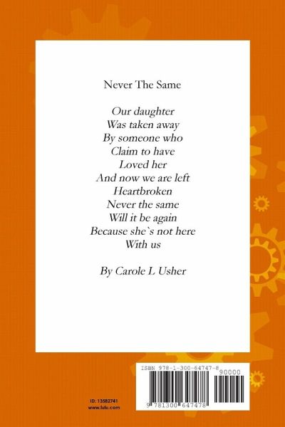 This book of poetry talks about the loss of a daughter. How her dreams have been taken away forever. Sometimes our dreams are taken away because of the action of another. And how can the parents of missing childeren go own in their life? Where are their childeren? The pain they feel is real. And what about a young woman that was sleeping on the street, because of hard times. Thank God there was a man who knew of the goodness of God, and he cared by helping her. When families are taken away, it will never be the same again, without them. There have been alot of changes in this world, and they are not always good. Open up your eyes and just look around. Some people are hurting because of problems not of their making.Can your warm words heal their pain? Can you share their pain to help another. Wake up world, this is a new day.