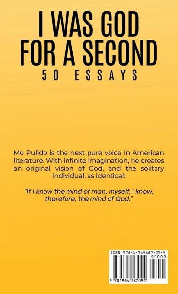 Mo Pulido is the next pure voice in American literature. With infinite imagination, he creates an original vision of God, and the solitary individual, as identical: "If I know the mind of man, myself, I know, therefore, the mind of God."