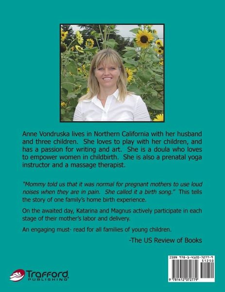 This book has great color pictures that compliment the story of a baby being born in water at home. The whole family is involved in the great miracle of bringing a new baby into this world. The event takes place in their home, and storyteller is a seven year old girl named Katarina. Her brother Magnus who is five years old and Katarina get to help out and watch as their baby brother is being born. There is lots of anticipation and wonder. When the baby finally arrives Katarina and Magnus got to watch the birth, and they cut the umbilicus cord. Soon after the baby was born, he was held and loved, not only by his Mommy and Daddy, but also by his big brother and big sister. This is a wonderful book for anyone that works with expectant parents, (midwifes, Obstetricians, doulas, child-birth educators, expectant parents and also children of all ages).