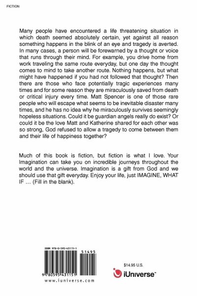 Many people have encountered a life threatening situation in which death seemed absolutely certain, yet against all reason something happens in the blink of an eye and tragedy is averted. In many cases, a person will be forewarned by a thought or voice that runs through their mind. For example, you drive home from work traveling the same route everyday, but one day the thought comes to mind to take another route. Nothing happens, but what might have happened if you had not followed that thought? Then there are those who face potentially tragic experiences many times and for some reason they are miraculously saved from death or critical injury every time. Matt Spencer is one of those rare people who will escape what seems to be inevitable disaster many times, and he has no idea why he miraculously survives seemingly hopeless situations. Could it be guardian angels really do exist? Or could it be the love Matt and Katherine shared for each other was so strong, God refused to allow a tragedy to come between them and their life of happiness together?