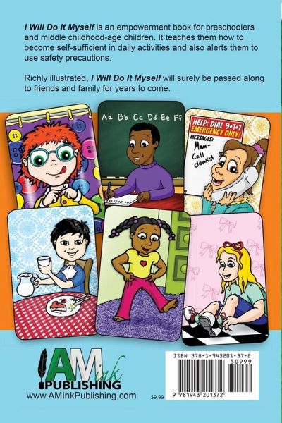 I Will Do It Myself is an empowerment book for preschoolers and middle childhood-age children. It teaches them how to become self-sufficient in daily activities and also alerts them to use safety precautions. Richly illustrated, I Will Do It Myself will surely be passed along to friends and family for years to come.