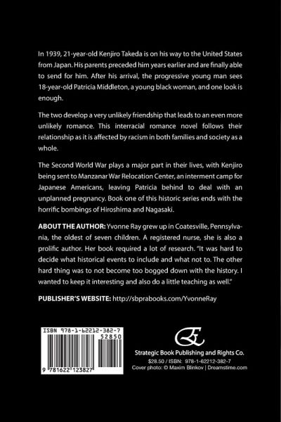 In 1939, 21-year-old Kenjiro Takeda is on his way to the United States from Japan. His parents preceded him years earlier and are finally able to send for him. After his arrival, the progressive young man sees 18-year-old Patricia Middleton, a young black woman, and one look is enough.The two develop a very unlikely friendship that leads to an even more unlikely romance. This interracial romance novel follows their relationship as it is affected by racism in both families and society as a whole.The Second World War plays a major part in their lives, with Kenjiro being sent to Manzanar War Relocation Center, an internment camp for Japanese Americans, leaving Patricia behind to deal with an unplanned pregnancy. Book one of this historic series ends with the horrific bombings of Hiroshima and Nagasaki.About the Author: Yvonne Ray grew up in Coatesville, Pennsylvania, the oldest of seven children. A registered nurse, she is also a prolific author. Her book required a lot of research. "It was hard to decide what historical events to include and what not to. The other hard thing was to not become too bogged down with the history. I wanted to keep it interesting and also do a little teaching as well."Publisher's website: http://sbprabooks.com/YvonneRay