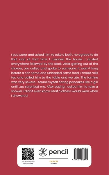 I put water and asked him to take a bath. He agreed to do that and at that time I cleaned the house. I dusted everywhere followed by the deck. After getting out of the shower, Lau called and spoke to someone. It wasn't long before a car came and unloaded some food. I made milk tea and called him to the table and we ate. The famine was very severe. I found myself eating pancakes like a girl until Lau surprised me. After eating I asked him to take a shower. I didn't even know what clothes I would wear when I showered.