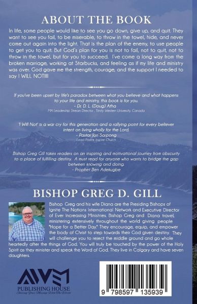 In life, some people would like to see you go down, give up, and quit. They want to see you fail, to be miserable, to throw in the towel, hide, and never come out again into the light. That is the plan of the enemy, to use people to get you to quit. But God's plan for you is not to fail, not to quit, not to throw in the towel, but for you to succeed. I've come a long way from the broken marriage, working at Starbucks, and feeling as if my life and ministry was over. God gave me the strength, courage, and the support I needed to say I WILL NOT!!!!