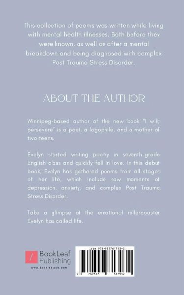 This collection of poems was written while living with mental health illnesses. Both before they were known, as well as after a mental breakdown and being diagnosed with complex Post Trauma Stress Disorder.