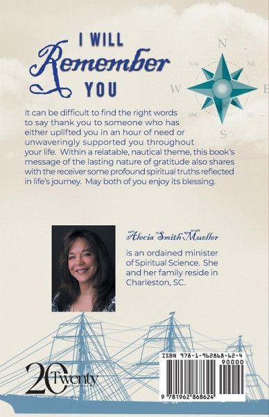 It can be difficult to find the right words to say thank you to someone who has either uplifted you in an hour of need or unwaveringly supported you throughout your life. Within a relatable, nautical theme, this book's message of the lasting nature of gratitude also shares with the receiver some profound spiritual truths reflected in life's journey. May both of you enjoy its blessing. Alecia Smith Mueller is an ordained minister of Spiritual Science. She and her family reside in Charleston, SC.