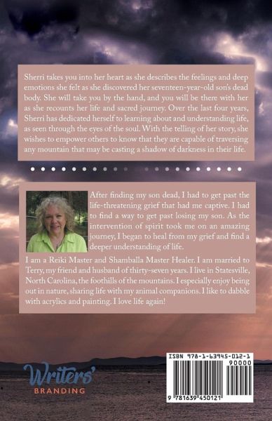 Sherri takes you into her heart as she describes the feelings and deep emotions she felt as she discovered her seventeen-year-old son's dead body. She will take you by the hand, and you will be there with her as she recounts her life and sacred journey. Over the last four years, Sherri has dedicated herself to learning about and understanding life, as seen through the eyes of the soul. With the telling of her story, she wishes to empower others to know that they are capable of traversing any mountain that may be casting a shadow of darkness in their life.