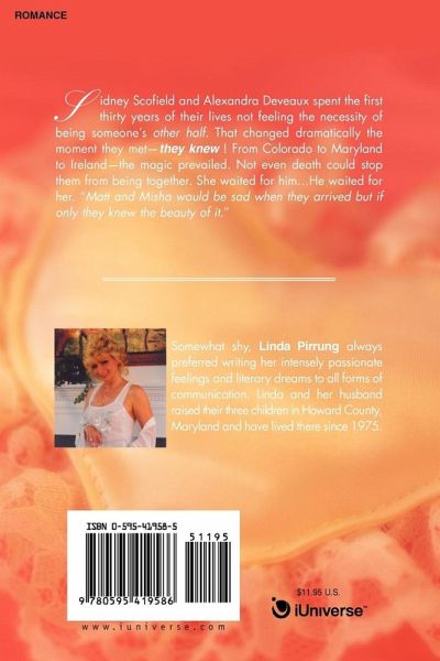 Sidney Scofield and Alexandra Deveaux spent the first thirty years of their lives not feeling the necessity of being someone's other half. That changed dramatically the moment they met-they knew! From Colorado to Maryland to Ireland-the magic prevailed. Not even death could stop them from being together. She waited for him.He waited for her. "Matt and Misha would be sad when they arrived but if only they knew the beauty of it."