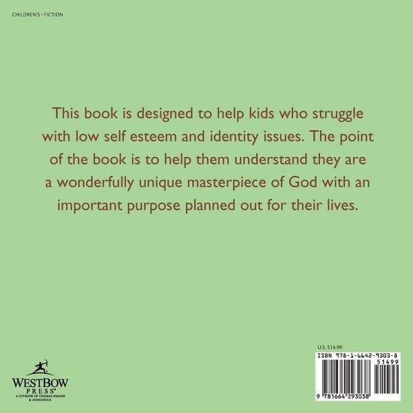 This book is designed to help kids who struggle with low self esteem and identity issues. The point of the book is to help them understand they are a wonderfully unique masterpiece of God with an important purpose planned out for their lives.