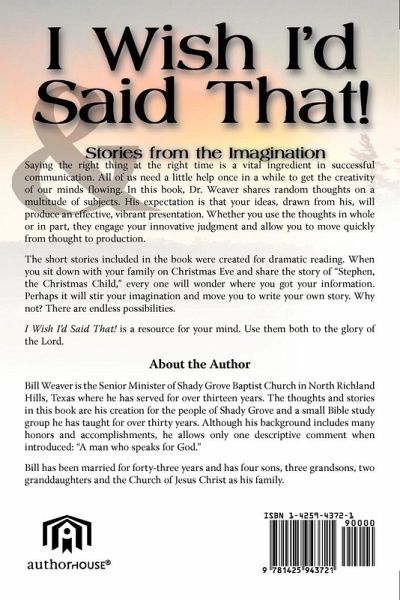 Bill Weaver is the Senior Minister of Shady Grove Baptist Church in North Richland Hills, Texas where he has served for over thirteen years. The thoughts and stories in this book are his creation for the people of Shady Grove and a small Bible study group he has taught for over thirty years. Although his background includes many honors and accomplishments, he allows only one descriptive comment when introduced: "A man who speaks for God." Bill has been married for forty-three years and has four sons, three grandsons, two granddaughters and the Church of Jesus Christ as his family.