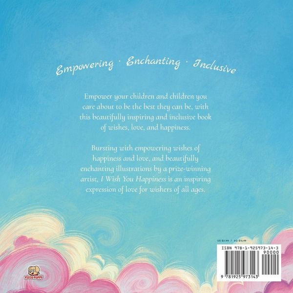 Empower your children and children you care about to be the best they can be, with this beautifully inspiring and inclusive book of wishes, love, and happiness. Bursting with empowering wishes of happiness and love, and beautifully enchanting illustrations by a prize-winning artist, I Wish You Happiness is an inspiring expression of love for wishers of all ages.