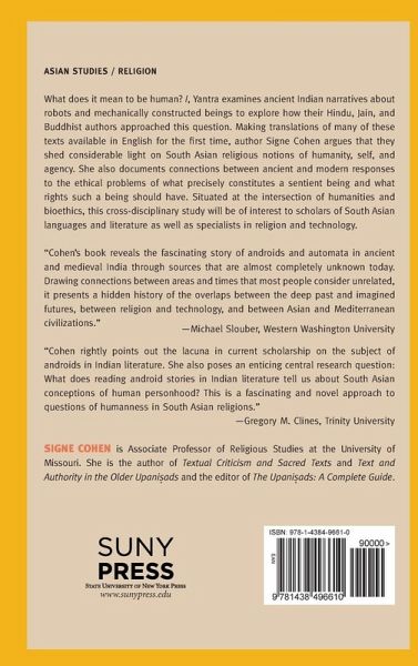 Argues that ancient yantra (robot) tales reveal how their Hindu, Buddhist, and Jain authors thought about the nature of humanity and our role in a cosmos filled with divine and natural forces. Winner of the 2025 Award for Excellence in the Study of Religion: Textual Studies presented by the American Academy of Religion What does it mean to be human? I, Yantra examines ancient Indian narratives about robots and mechanically constructed beings to explore how their Hindu, Jain, and Buddhist authors approached this question. Making translations of many of these texts available in English for the first time, author Signe Cohen argues that they shed considerable light on South Asian religious notions of humanity, self, and agency. She also documents connections between ancient and modern responses to the ethical problems of what precisely constitutes a sentient being and what rights such a being should have. Situated at the intersection of humanities and bioethics, this cross-disciplinary study will be of interest to scholars of South Asian languages and literature as well as specialists in religion and technology.